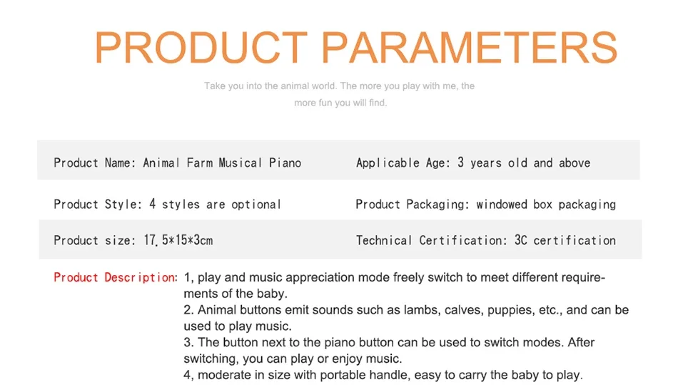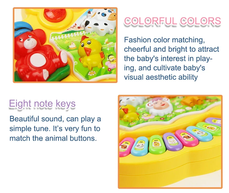 Eight colorful keys, can play simply melody like a small piano, which can exercise baby's musical sense. The best gift for little kids.